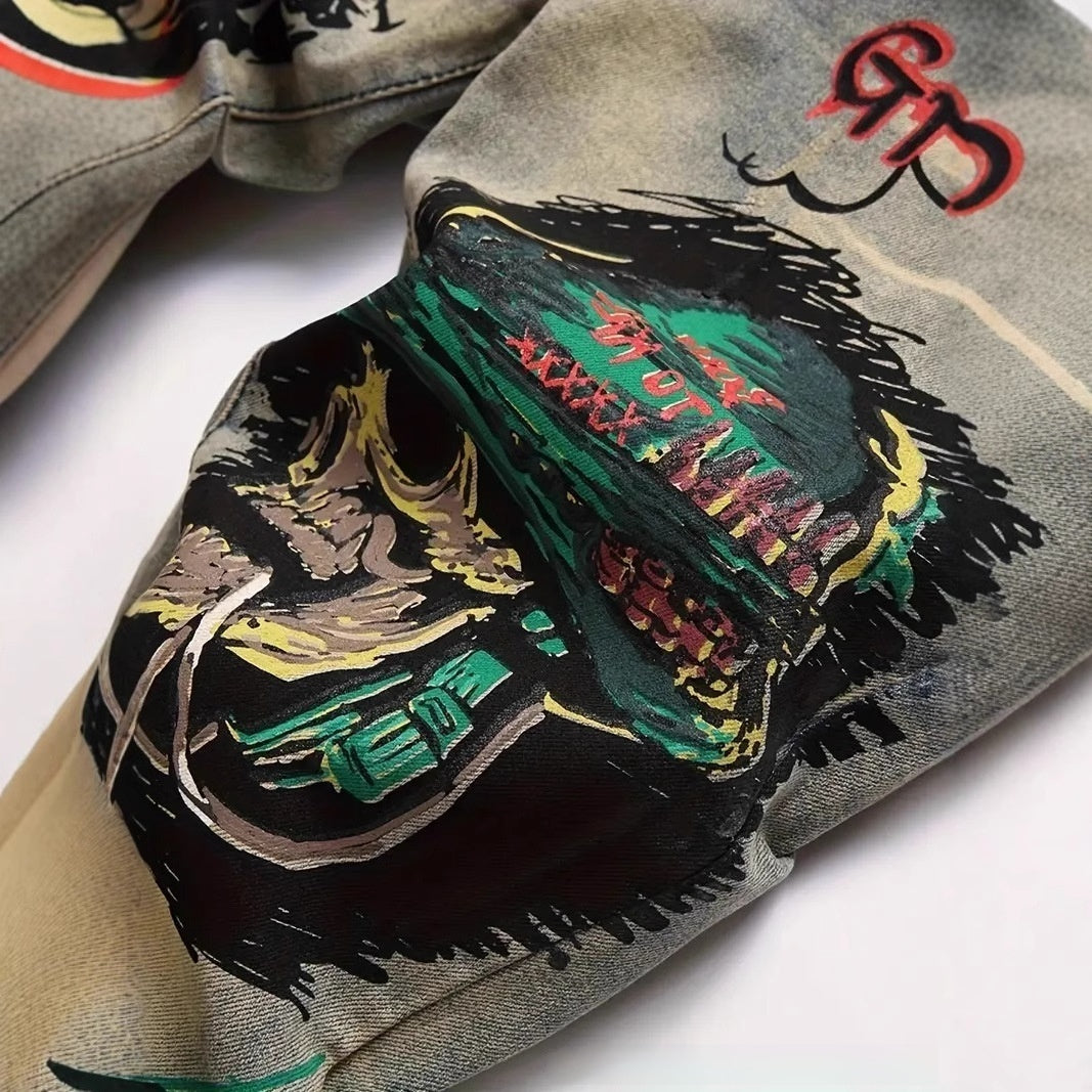 Slim-fit Stretch Ripped Embroidered Vintage Patch Jeans